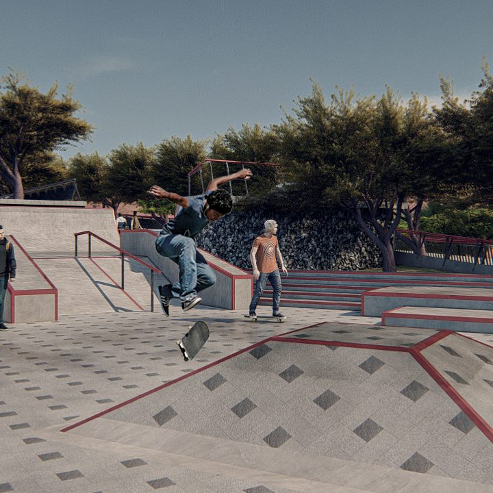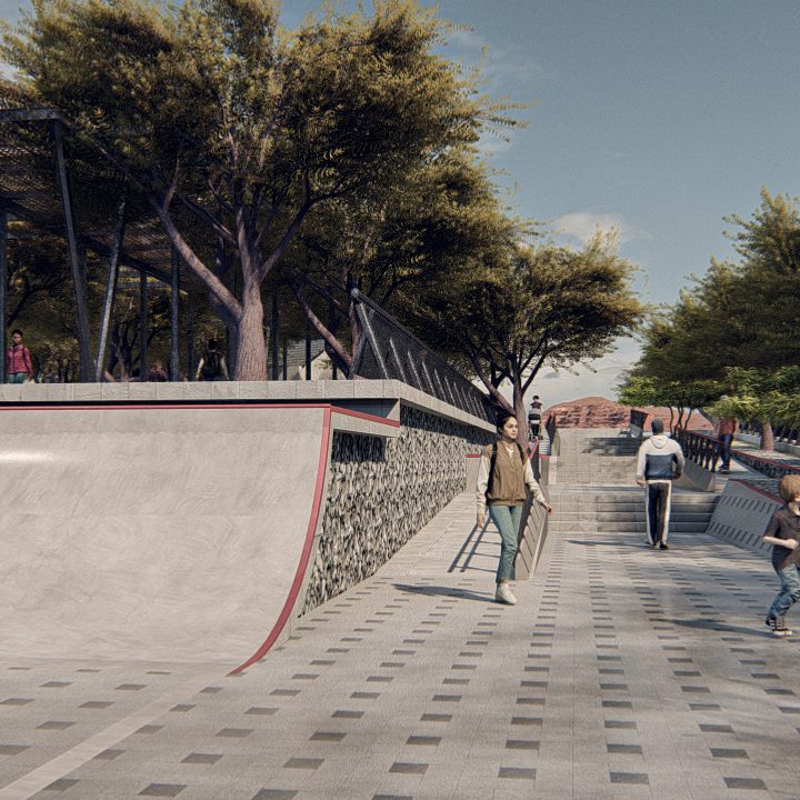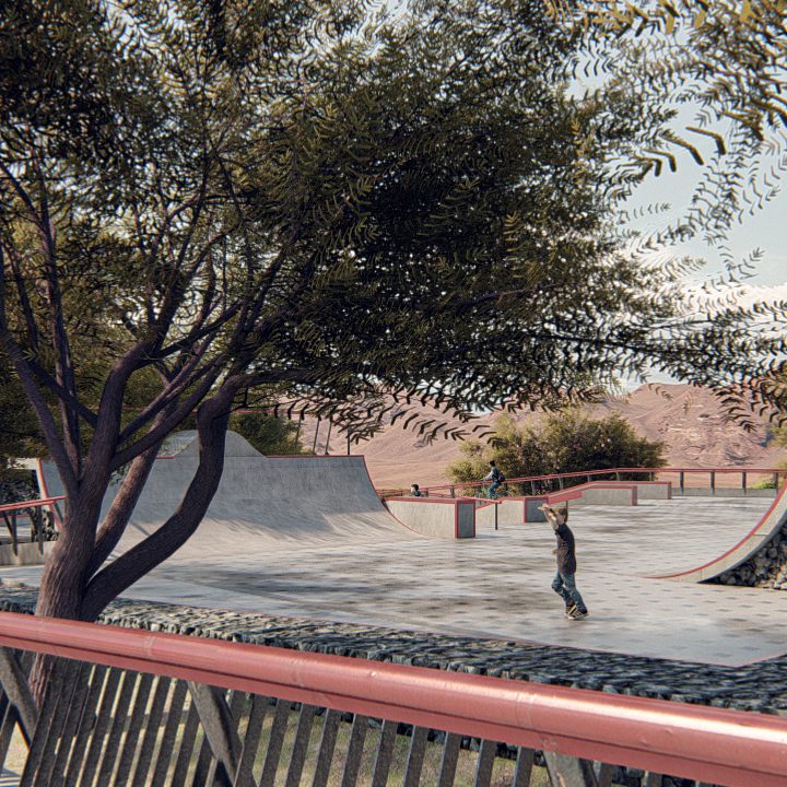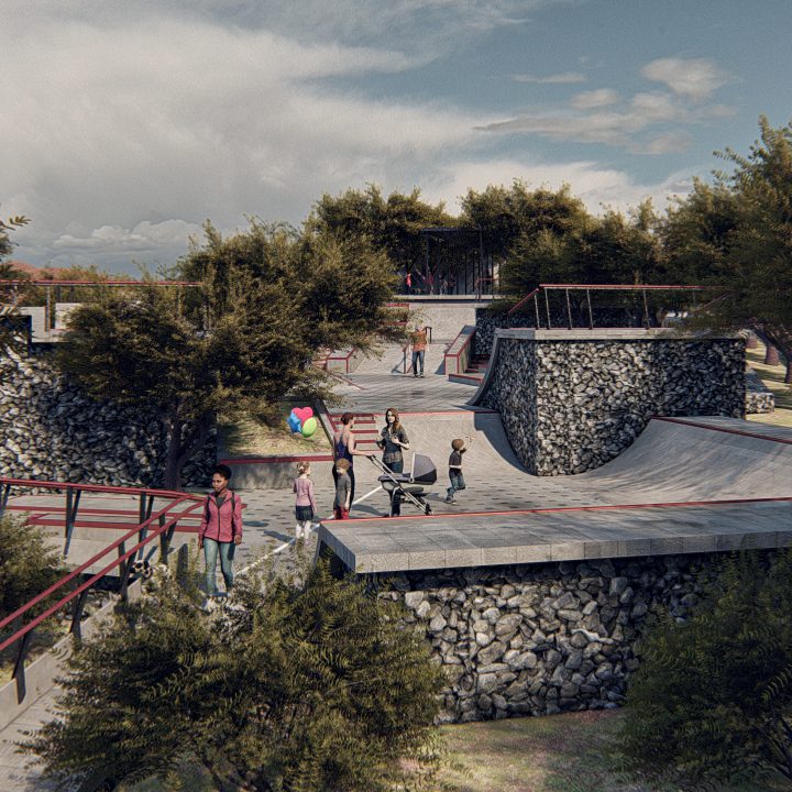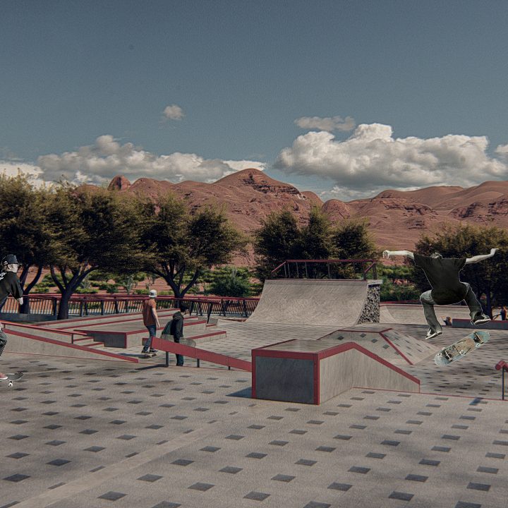 Diseño del Skatepark Kaukari, por encargo del MINVU COPIAPÓ, colaboración junto a Codiseño Urbano. Diseño pensado como lugar de encuentros culturales para la ciudad, enmarcado en el proyecto de recuperación de la rivera del río Copiapó.
